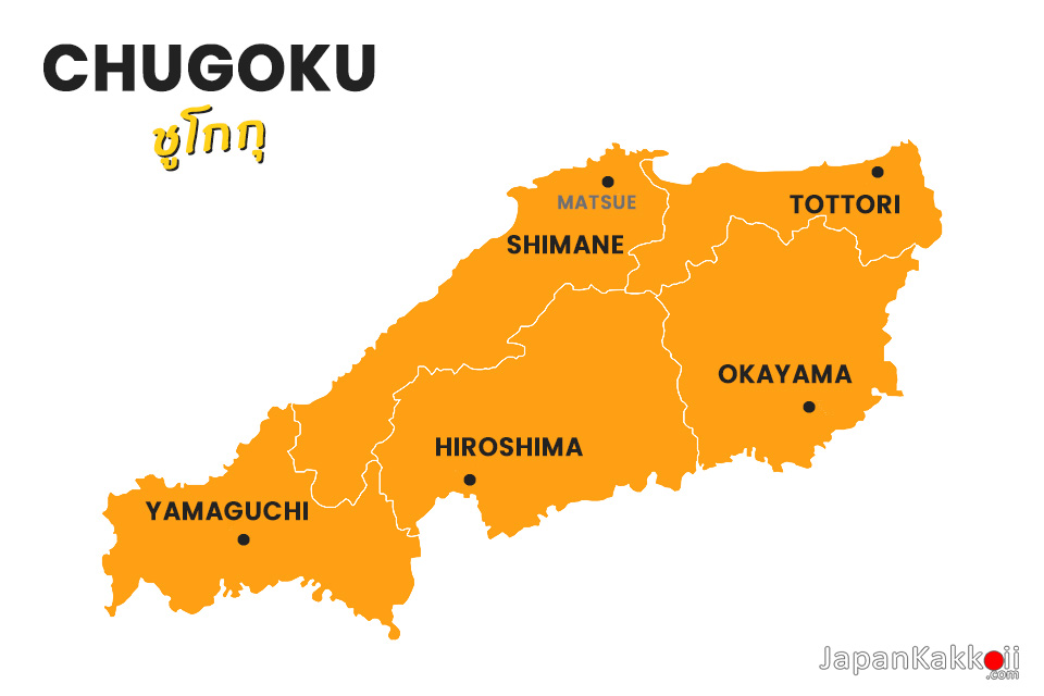 ภูมิภาคชูโกกุ (Chugoku) ตั้งอยู่ทางทิศตะวันตกสุดของเกาะฮอนชู มีแหล่งท่องเที่ยวที่มีชื่อเสียงคือ เกาะมิยาจิม่า ในจังหวัดฮิโรชิม่า ประกอบด้วย 5 จังหวัด ได้แก้ ทตโทริ ชิมาเนะ โอคายาม่า ฮิโรชิม่า และยามากุจิ