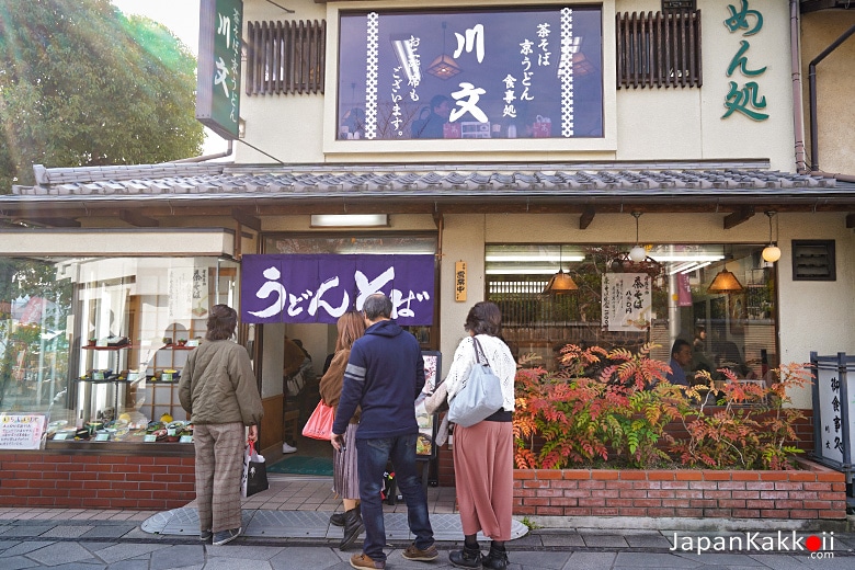 แต่สำหรับแอดมินนั้นอยากทานโซบะชาเขียวค่ะ ก่อนอื่นก็ขอมาสำรวจร้านและความยาวของแถวที่ต่อกันก่อน เดินมาเรื่อยๆ จนใกล้ถึงทางเข้าวัด ก็มาเจอร้านอุด้งโซบะนี้อยู่ตรงสุดถนนก่อนทางเข้าวัดค่ะ เมนูน่าทาน ตรงกับความต้องการพอดี แถวไม่ยาวมากด้วยก็เข้าไปต่อแถวกันเล้ย!
