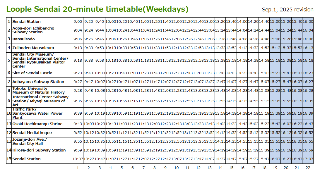 ดาวโหลดไฟล์ตารางเดินรถแบบ PDF ได้ที่ » loople-sendai.jp